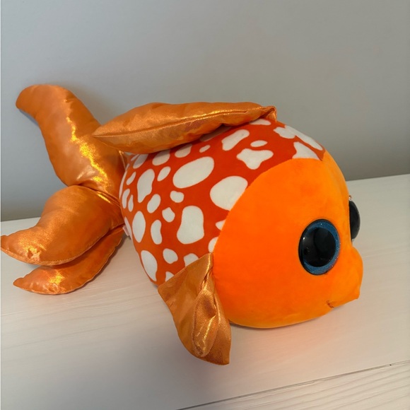 Extra large plush fish with shiny fins/tail. Measures 13” long (22” long including tail). Just sat in a toy chest.