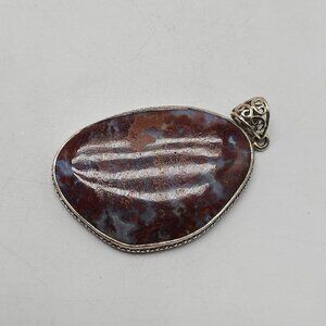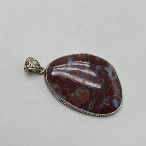 Large Polished Red Blue Moss Agate Stone Pendant With Ornate Silver Bail