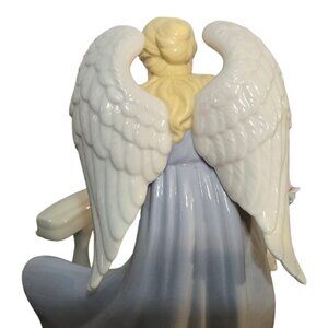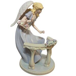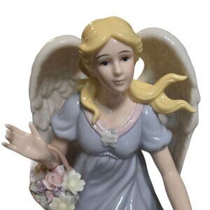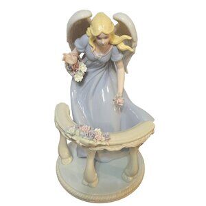 Large Porcelain Angel Figurine Floral Flower Basket Heavy 13 Inch Collectible