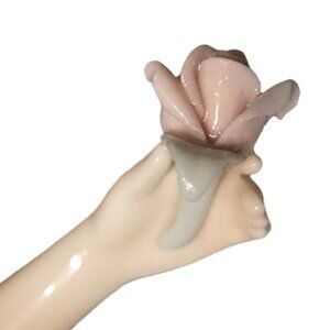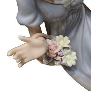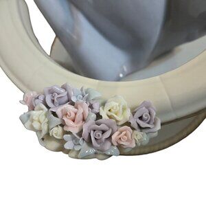 Elegant porcelain angel figurine adorned with a delicate floral garland. Ideal for collectors or as a decorative piece.