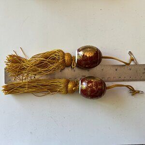 Large Porcelain Maroon/Gold Bead Tiebacks (Pair)