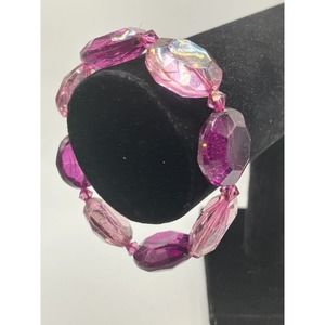 Large Purple & Lavender Glass Crystal Stretch 7 Inch Bracelet!
