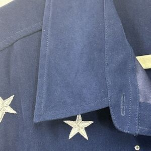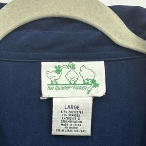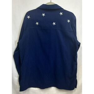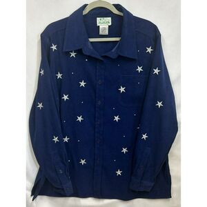 Large Quacker Factory L Velvet Velour Embroidered White Stars Blue button up