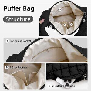 Large Quilted Tote Bag Nylon Puffer Oversized Carryall Pouch Crossbody