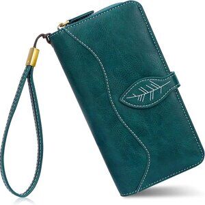 Large RFID Wallet Women Leather Clutch Credit Card Holder with Wristlet