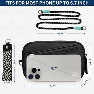 Features: Quilted nylon design with multiple compartments including 3 zippered sections, 3 card slots, a transparent ID window, and a back pocket for coins or keys. Fits a 6.10" smartphone easily. RFID-blocking lining keeps your info secure. Detachable strap offers versatility to use as a wristlet or crossbody, perfect for errands, concerts, or days out.