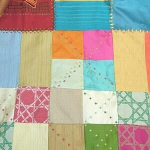 Large Rare Vintage Patchwork Crazy Quilt Embroidered 58x88