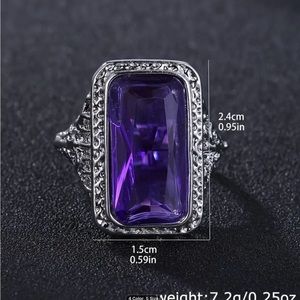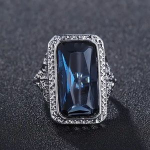 Beautiful sapphire blue zircon ring in silver plate. Lots of detail on this beauty