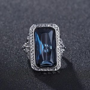 Large Rectangular Sapphire Blue Ring
