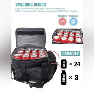 Large Reusable Lunch Cooler Bag for Men, Women and Children Lunch Bag (Black)