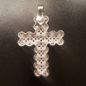 3" long 2" wide rhinestone embellished cross. Magnetic closure.