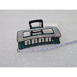 Large Rhinestone Embellished Hair Claw Clip Black & Teal