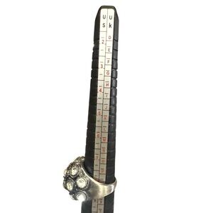Times Square Crystal Ring Antiqued Matte Silver Plated Size 9. This stunning silver ring features intricate brilliant crystal design. Sure to attract attention!