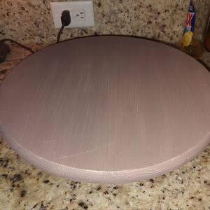 Very nice solid wood large 14" round riser with metal feet in excellent condition.
