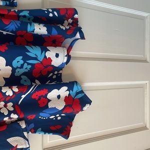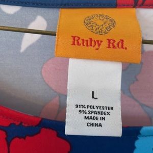Made by Ruby Rd. (from Belk) - red, white, and blue flowers on this pretty blouse. White flowers have a raised pattern. In gently used condition. Fun “handkerchief” hem. Smoke free home. Size - Large.