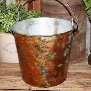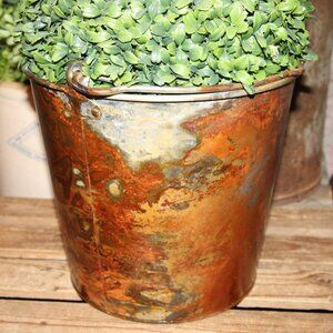 Large Rusty Galvanized Metal Rustic Farmhouse Bucket Pail Planter