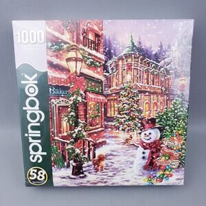 Large SPRINGBOK 1000 Pc. Jigsaw Puzzle Merry Main Street Snowy Christmas Town.
