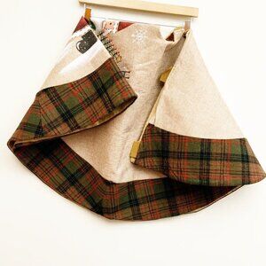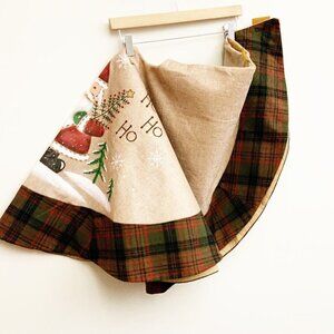 Large Santa Green Plaid Trim Wool Blend Tree Skirt Holiday Christmas Decor