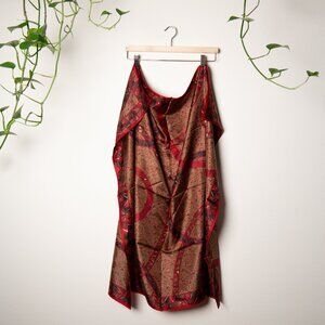 Beautiful large scarf! In great shape. No tag but I believe it's probably polyester. Very smooth and silky though! Approximately 35" x 35"