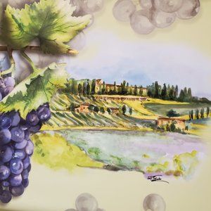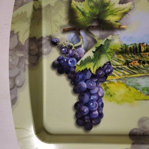 Beautiful Large Serving Tray Tuscany Grape Vines 20 x 14" Rectangular. Made In Italy. Very Good Condition. No scratches or chips on tray. The back has a few very small spots but that's it! The edging is raised 1 1/2" on the ends. 0000 on back. Made of melamine.