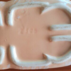 Retro design on this cute vintage planter. More of an orangey peach with white splatters - fantastic condition, no chips or cracks. Just like grandma's house!