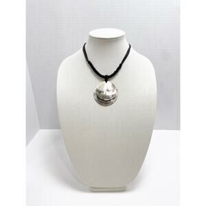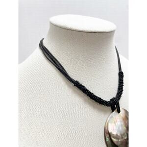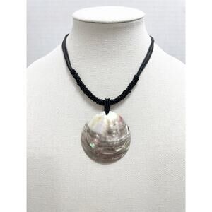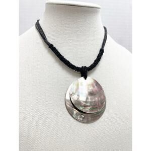 Large Shell Mother of Pearl Abalone Pendant Black Bead Necklace Minimal 90s