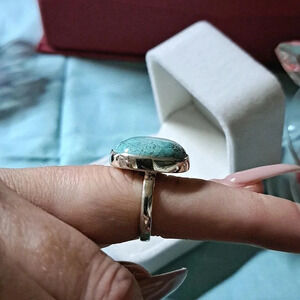 Large Sierra Nevada Turquoise Solitaire Ring In 925 Sterling Silver.