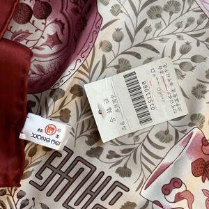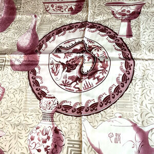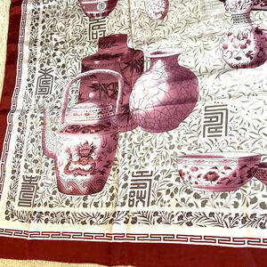 Large Silk Scarf 42 in square NWT silky Asian red pink teapots vessels vases