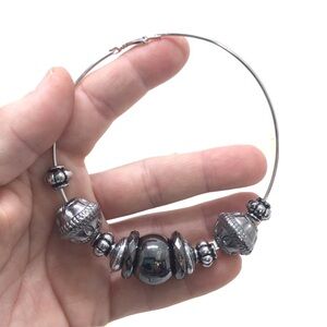 Large Silver and Gunmetal Beaded Statement Hoop Earrings. Brand new on jewelry card in plastic bag.