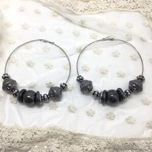 - large hoop style earrings accented with silver and gunmetal-toned plastic beads.