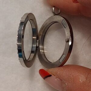 The locket opens like a book and has two transparent glass windows to view and hold 7-10 floating charms (depending on their size).