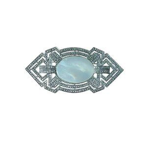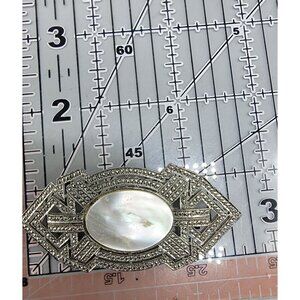Large Silver Marcasite Mother of Pearl Brooch Vintage Ladies Pin