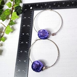 Large Silver Statement Hoop Earrings with Lavender Purple Sequin Disco Ball…