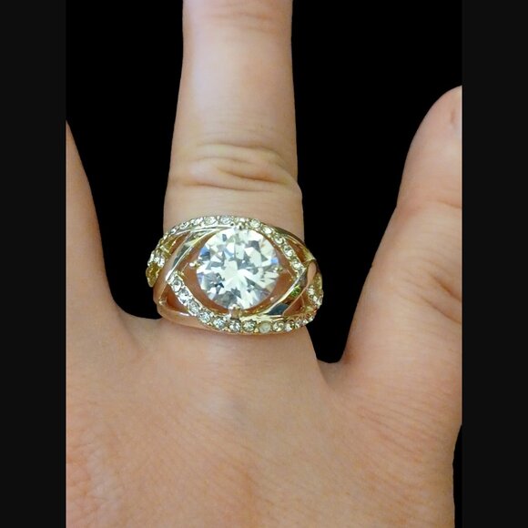 Add a touch of glamour to your outfit with this stunning cocktail ring. The ring features a beautiful crystal in a silver tone metal setting, with a sleek and modern design. The ring is a size 7.75 and is perfect for any occasion, whether you're heading to a party or just want to add some sparkle to your everyday look. This ring is a must-have accessory for any fashion-forward individual who wants to make a statement. It is made from high-quality materials and is designed to last. The ring is perfect for gifting to a loved one or for treating yourself. Make a bold fashion statement with this beautiful cocktail ring.