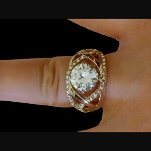Large Silver Tone Crystal Size 7.75 Statement Cocktail Ring