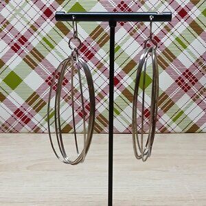 Large Silver Tone Oval Multi Hoop Metal Earrings Vintage Jewelry #92