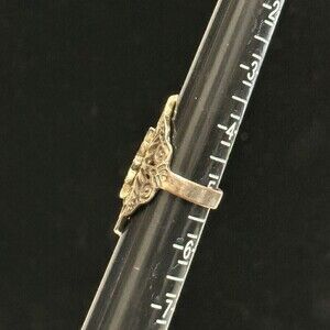 Large Silver Tone Womans Ring 5.25 Mandala Circle Rhinestone Ornate 1/2 Finger