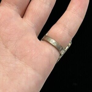 Silver tone is fading and wearing off, ring has an antiqued look. May need some light cleaning.