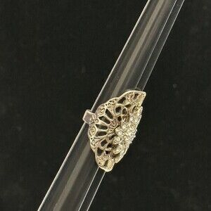 Large Silver Tone Womans Ring 5.25 Mandala Circle Rhinestone Ornate 1/2 Finger