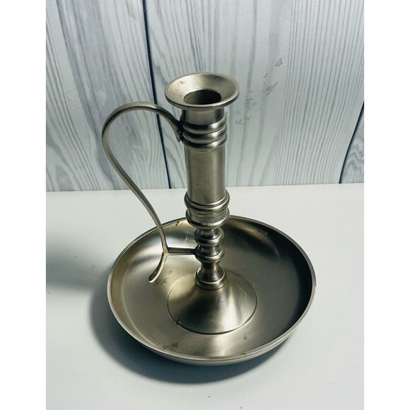 Large Silver Yankee Candle Chamber Stick Candle Holder w/Handle & Drip Tray