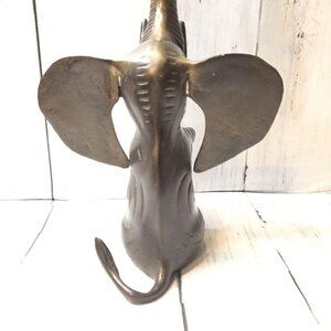 Large Sitting Brass Elephant Brutalist Carved India Trump Up Large Ears Long Tru