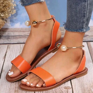 Large Size Women's Flat Sandals, Beach Slippers For Summer