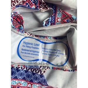 New without tags skirted one piece, from a smoke and pet free home. Features a paisley and geometric print in reds, blues, purples, etc.