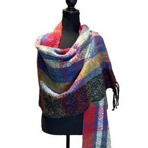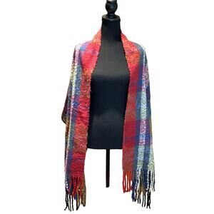 Large Soft, Warm Fringed Acrylic Scarf, Multicolor, EUC