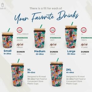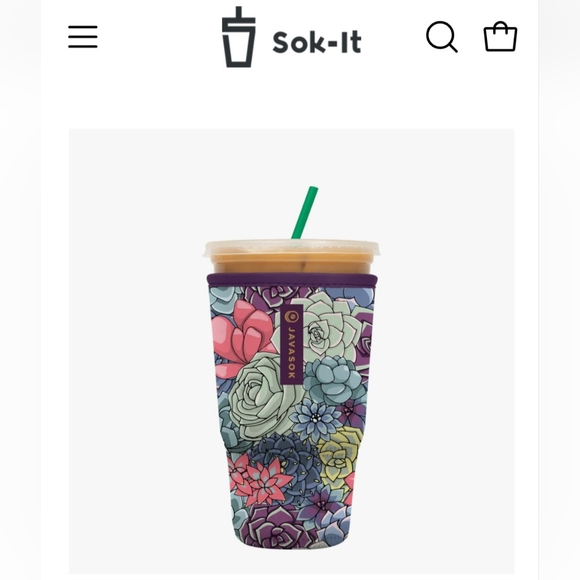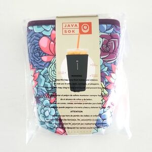 Large (30 - 32oz.) Java Sok from Sok-It. Reusable insulating cold beverage sleeve. Pretty succulent print in blue, purple, pink and green hues. Brand new, in the package. Received the wrong size and they would not allow an exchange.