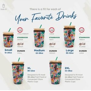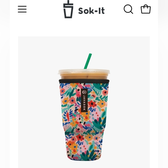 Large (30 - 32oz.) Java Sok from Sok-It. Reusable insulating cold beverage sleeve. Bright, multi-color, watercolor-esque floral print. Brand new, in the package. Received the wrong size and they would not allow an exchange.