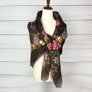 Large Square Brown Floral Roses Scarf Shawl Wrap