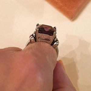 Large Square Cut Amethyst Ring in 925 Silver Artisan - NWT, Size 7