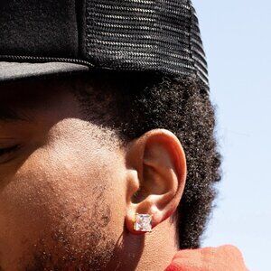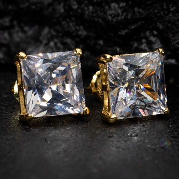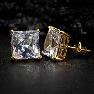 SIZE: 10mm. These Gold princess cut earrings are the best size for any occasion. Mens gold earrings that fit any standard piercing post hole. You can’t go wrong with these cz studs.