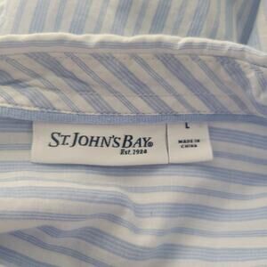 Large St. Johns Bay white & blue striped button down shirt, excellent condition